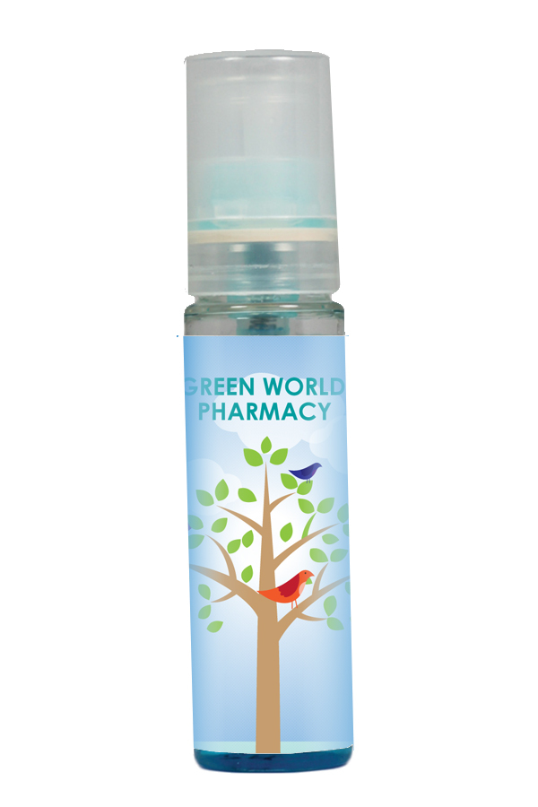 • Peppermint breath spray in a clear tube.